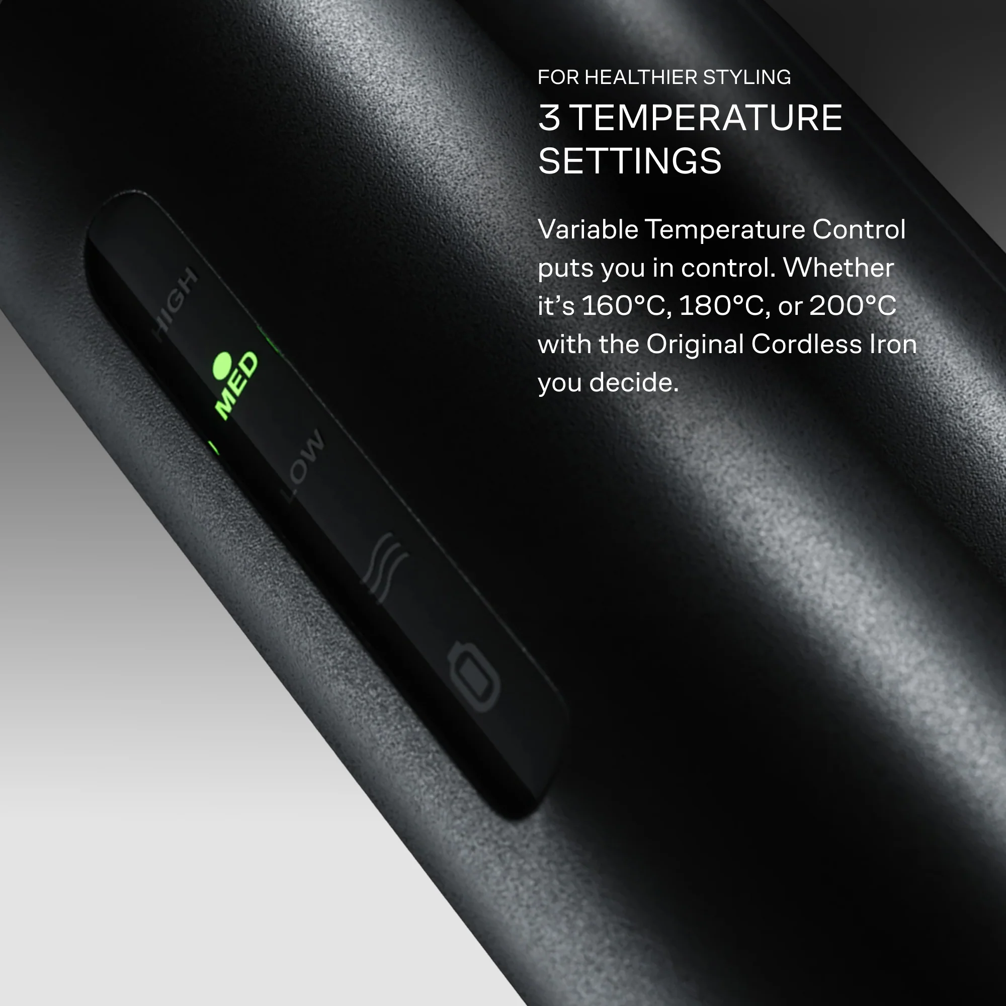 Con tre ottimali impostazioni di temperatura, potrai essere certa di creare i tuoi look ovunque tu sarai, senza inutili danni da calore. -